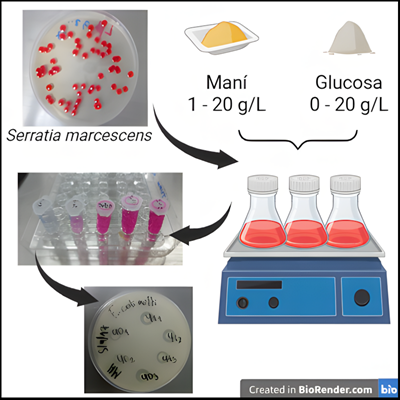 Actividad antibacteriana de un pigmento producido por Serratia marcescens FCS2015 usando polvo de maní como sustrato y diferentes concentraciones de glucosa
