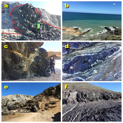 At Cabo de La Vela, dikes, irregular massive bodies, pods, and banded masses of rodingite have been identified, indicating the presence of at least two distinct protoliths. Field relationships, petrographic analyses, and geochemical data allow differentiation between gabroic and hornblenditic protoliths, mainly evidenced by the occurrence of hydrogrossular and prehnite interacting within ultramafic and mafic serpentinites. This ophiolitic complex is strongly deformed within a mélange zone and underwent early mylonitization, which facilitated intense calcium metasomatism responsible for rodingite formation, as well as additional hydrothermal alterations such as uralitization and albitization associated with multiple elemental enrichments. The presence of minerals like prehnite and pumpellyite indicates low-grade metamorphism in the rocks of the complex.