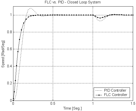 Fig. 1. Respuesta de velocidad del controlador PID y del controlador lógico difuso.