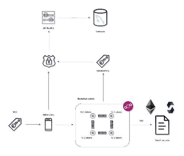 , an article by the same authors, which explores similar themes of centralized and decentralized systems linkage, NFC technology and blockchain, but with a focus on the field of medicine and access to medical history information. The architecture explored in