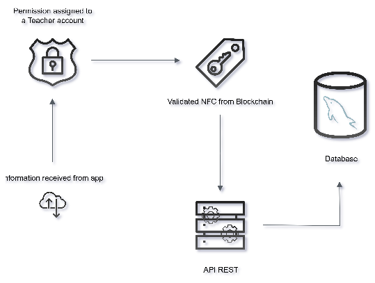 From an NFC gadget owned by the student, its authenticity is evaluated within the blockchain, Blockchain; within these there is written information which will be processed by a module dedicated to obtain the NDEF format
