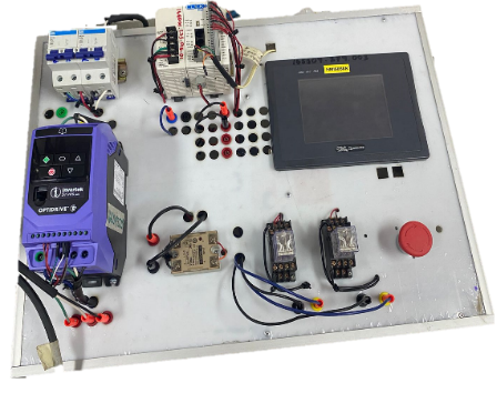 Se ha desarrollado un prototipo electromecánico a escala que ha sido automatizado mediante una interfaz de control, utilizando el protocolo de comunicaciones Modbus RTU. Esta interfaz ha integrado un Controlador Lógico Programable (PLC), una Interfaz Hombre-Máquina (HMI), un variador de frecuencia y dos motores, uno de los cuales es trifásico. Con el objetivo de verificar y documentar su funcionalidad óptima, se realizaron pruebas experimentales.