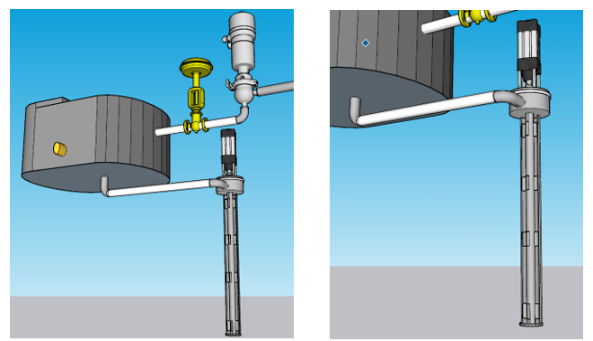 Se puede apreciar la estructura del sistema en la que la dirección del producto inicia en el tanque de balance (Fig. 4), ingresa a la válvula de membrana, y desciende por el tubo interno del tubo dosificador e inundándolo completamente de leche, de acuerdo con la apertura generada por el servomotor, se desplaza la varilla interna hacia abajo o hacia arriba según el caso, de esta manera el producto sale y llena las bolsas. Con base en ello el factor de apertura del tubo se revisa tanto el cierre total como los milímetros de apertura esto se da con un adecuado homing y calibración del servomotor a partir de la varilla interna, a partir del valor ingresado por pantalla para la apertura se verifica con un calibrador pie de rey, en la que en efecto correspondían los valores.