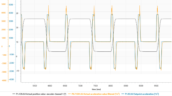 Fig. 11. Aceleración del servomotor, real vs setpoint.