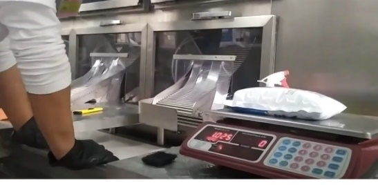 Fig. 21. Medición de peso de bolsa de leche recién envasada.
