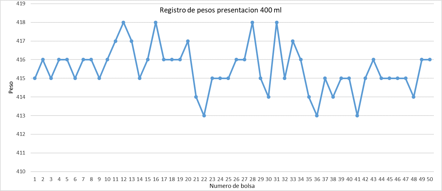 Fig. 25. Registro de pesos del cabezal 4, presentación 400ml.