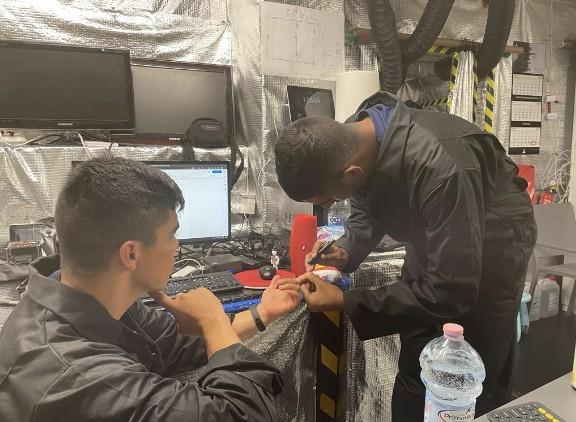 Durante la misión se presentaron dos diferentes emergencias simuladas, la primera una eyección de masa coronal y micro meteoritos donde se simulo el impacto de un micro meteorito en el hábitat y la tripulación debió reparar este problema, derivado de esto se evidencio un aumento a la exposición de radiación, esto con el fin de probar las habilidades, entrenamiento, conocimiento y psicología de los tripulantes análogos.3.8 Experimentos fuera del hábitat
