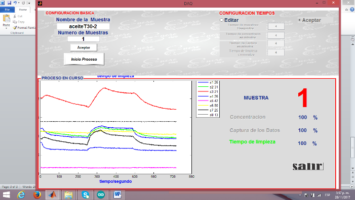 En la figura 7, se aplica a la muestra localizada en el vial una temperatura de 30ºC para observar cómo es la reacción de los sensores ante el aumento de la temperatura y así poder captar cada uno de los datos que estos nos entregan para su respectivo análisis