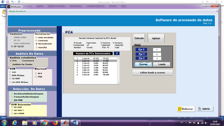 Una vez se aplicó el análisis PCA a todas las muestras tomadas y a diferentes temperaturas por medio del calentamiento previo que se hace con el headspace sampling, se reúnen en un solo archivo cada uno de los resultados y se hace el respectivo análisis, a continuación, en la figura 9 se mostrará el proceso que se hace para seleccionar el tipo de análisis que quiero efectuar a las muestras y luego obtener el análisis PCA, para dos muestras.