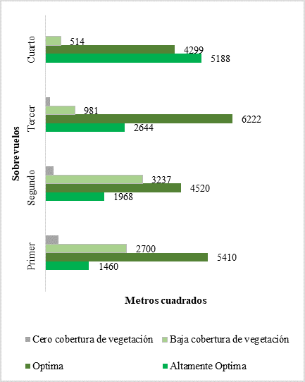 Fig. 13. Comportamiento cobertura vegetal desde el primero a cuarto sobrevuelo.