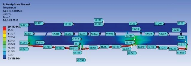 study its thermal efficiency, a dynamic method is implemented in simulations of temperature distribution and