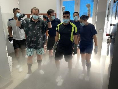 Durante la dinámica de equipo en la noche, la tripulación corrió 7 km bajo condiciones de lluvia comenzando a una altura de 210 m y alcanzando un pico de mitad de ruta de 347 msnm, el tiempo que tardo el equipo en llegar a la cima de la colina ((Piłsudski Mould en Cracovia), se midió y comparo con tripulaciones anterior, esta tarea fue ejecutada por la tripulación THOR en 45 minutos, Los datos fisiológicos se registraron a través de los sensores Movisens, en esta actividad no se permitían luces, lo cual dificultaba la navegación, visión nocturna y la autopercepción. La tarea final luego de alcanzar la cima fue volver al principio utilizando habilidades de memoria espacial y trabajo en equipo (Figura 3). Tomó más que el promedio en comparación con otras tripulaciones alrededor de 2h.