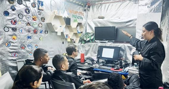 . Mientras tanto, dos miembros externos de la tripulación proporcionaban orientación y apoyo remoto desde el Centro de Control de la Misión (MCC) en tierra.