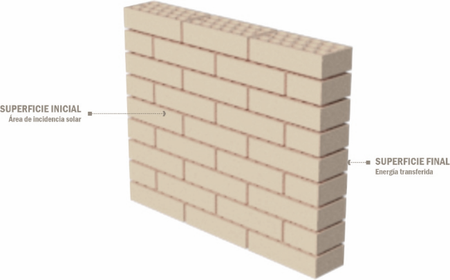 exterior que forma el muro está expuesta a la radiación solar directa, calor que es transferido a través de