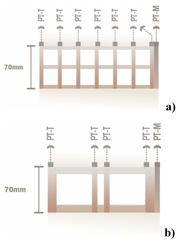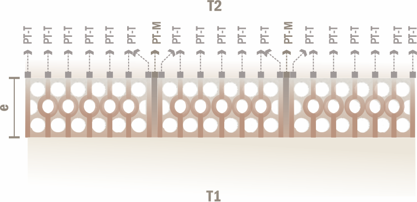 En la Figura 3, T1 define la superficie inicial de incidencia solar, PT-T representa los puentes térmicos