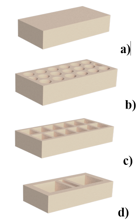 Fig. 2. Tipologías de ladrillo cerámicos a) L-1, b) L-2, c) L-3 y d) L-4.