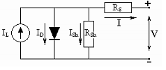 or panel, the characteristic equation is: \[ I = I_L - I_D \left[ e^{\frac{V + R_s I}{a}} - 1 \right] - \frac{V + R_s I}{R_{sh}} \hspace{1cm}