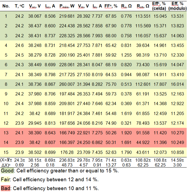 Note. a Fill Factor, area of the cell that is "filled" with solar radiation and converts it into electricity. b Efficiency. c Electro-optical