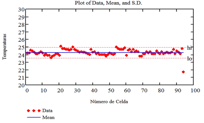 Fig. 5 Graphic Representation of the Temperature Measurements, with their Respective Average Value and Errors