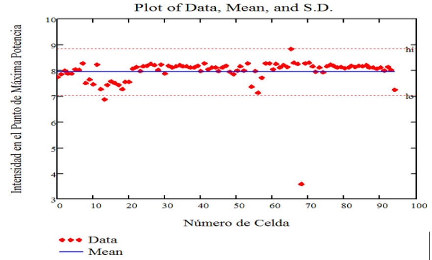 Fig. 10 Graphic Representation of the Measurements of the Intensity at the Point of Maximum Power with its Respective Average Value and