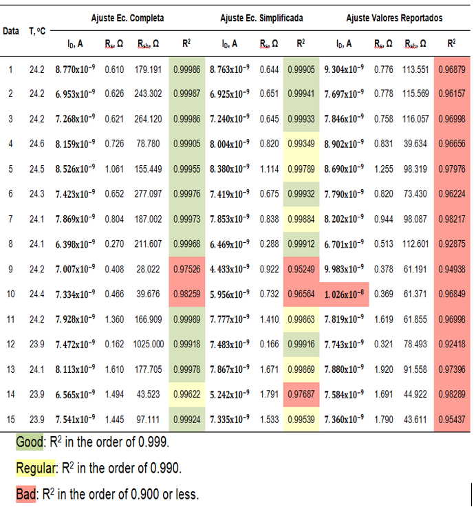 15.0 y la teoría matemática de métodos numéricos. La calidad del ajuste se determina comparando los coeficientes estadísticos R2