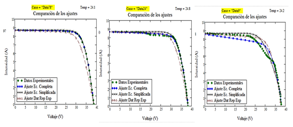 sensores de radiación solar. Los puntos experimentales se extrajeron con el programa OriginPro 2017 y se procesaron con el programa Mathcad