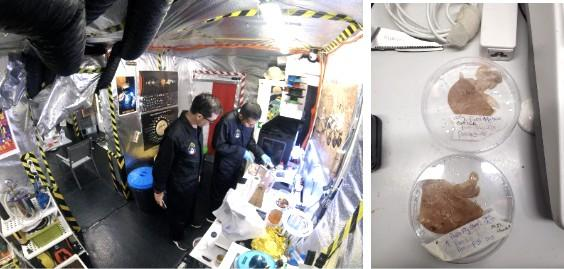 Un sistema hidropónico instalado en el hábitat permite un ambiente adecuado para el crecimiento de las plantas y la germinación de las semillas y podría ser una plataforma disponible para la cosecha en la superficie de otro planeta. El dispositivo estaba equipado con un tanque de agua y dos bandejas, un sistema hidráulico alimentado por una bomba que permite que el agua fluya y mantenga vivas las plantas. La calidad del agua y las condiciones ambientales, como el dióxido de carbono, la humedad relativa y la temperatura, se medían tres veces al día. Además, la química del agua, como pH, nitritos, nitratos, fosfatos, oxígeno, amonio, dureza de carbonato, cobre, hierro, silicato y dureza de carbonatos se midió utilizando un kit de acuario de agua dulce JBL Pro AquaTest Lab (Figura 05).