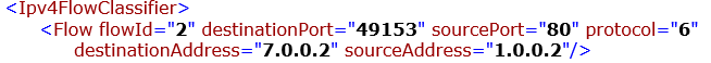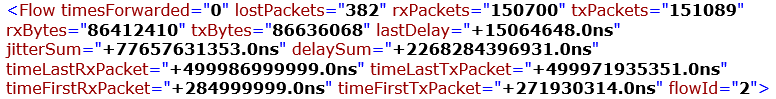 Para este escenario la retransmisión de paquetes corresponde a lo que LENA denomina lostPackets. Cabe recordar que la transmisión se realiza a nivel de capa 4, mediante el protocolo TCP el cual en la cabecera IP se nota como protocolo 6 (protocol= "6" ver Fig. 6, es decir los paquetes que se pierden luego son retransmitidos, dicho valor es igual a 382 como se puede observar en la Fig. 3. Así, este valor representa el 0,25% del total de paquetes transmitidos (txPackets). Por tanto, cumple con el parámetro de QoS de acuerdo a la Tabla 1.