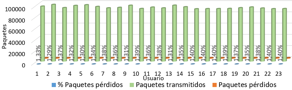 Fig. 12. Paquetes pérdidos para 23 usuarios