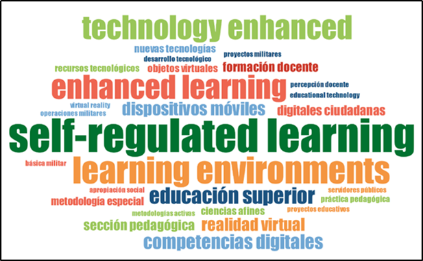 Nota. La figura muestra la nube de palabras donde se muestra con mayor frecuencia el término aprendizaje autorregulado, posteriormente ambiente de aprendizaje y tecnología mejorada, según compendio nube analizada por el programa MAXQDA.