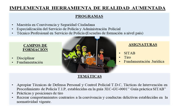 Nota. Análisis de implementación prototipo de realidad aumentada en diferentes asignaturas de los programas de maestría en convivencia y seguridad ciudadana, especialización del servicio de policía y administración policial.