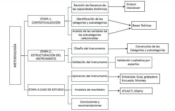 En este sentido, se estudia el avance de la producción científica sobre la temática de las capacidades dinámicas (CDs), la relación de las capacidades dinámicas de absorción, aprendizaje organizacional, adaptación e innovación, con la Gestión Estratégica del Talento Humano y la incidencia de estas en el desempeño empresarial; lo anterior en apoyo al refinamiento del sustento teórico y metodológico de un estudio de caso (Figura 1).