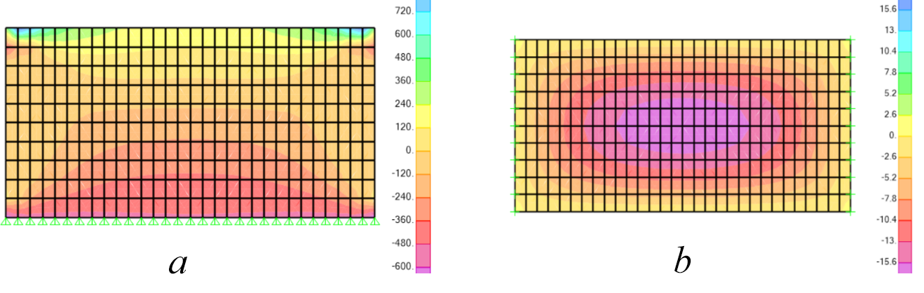 Figure 3a shows the mathematical modeling in finite element software of 12x50x98cm solid slabs when working with flexural compression. The loads used for the modeling result from a load transfer analysis of a structural masonry system for single-story dwellings. It is evident that the compression forces are concentrated in the upper corners and in the lower central part. This behavior is due to the internal reactions generated by the system to control the deformations of the plates. The maximum load values are around 200kN, so it can be deduced that all the developed specimens have the capacity to support compression loads, except the microconcrete with 3% fiber addition. However, for moment control, the use of reinforcing steel is required in the case of MRC and FRC-2: while the GRC and FRC-1 mixes have the capacity to support moments without the need for reinforcing steel reinforcement.