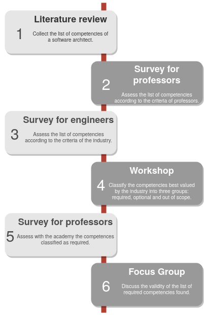 Para conocer las competencias mínimas en el área de AS que la industria espera en los recién egresados de programas de Ingeniería de sistemas y afines, llevamos a cabo un primer ciclo de investigación-acción siguiendo los siguientes pasos: