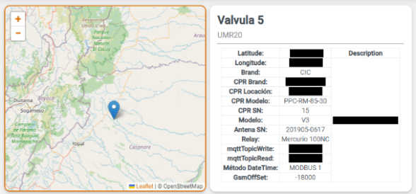 Este módulo permitirá visualizar la ubicación geográfica de los dispositivos según sus coordenadas, así como su estado de alarma y configuración de ciclado mediante marcadores. Su interacción permitirá visualizar una ventana modal con los últimos datos adquiridos de las variables de monitoreo.