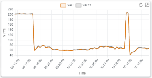 Fig. 7. Datos durante un día de Voltaje AC de un equipo mostrado en la plataforma.