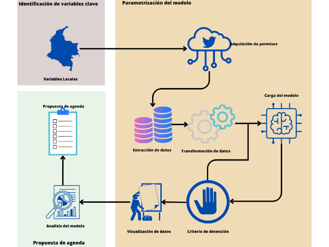 . Se propone el diseño de un modelo basado en datos de Twitter para la creación de políticas públicas en la Región Metropolitana de Bogotá, ya que, que es una de las fuentes de generación y recolección más grandes de datos generados por humanos