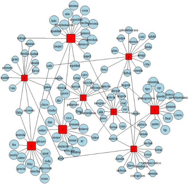 Fig. 3. Grafo bipartito producto de los tweets de la región metropolitana de Bogotá insumo para la construcción de políticas públicas.