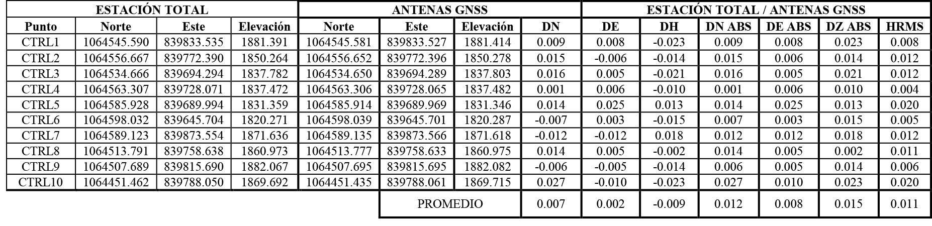 Tabla 4: Comparativo de puntos de control: Estación Total & Antenas GNSS