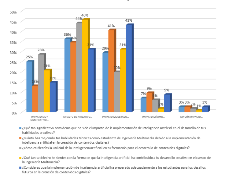 - ¿Cuánto has mejorado tus habilidades técnicas como estudiante de Ingeniería Multimedia debido a la implementación de inteligencia artificial en la creación de contenidos digitales?