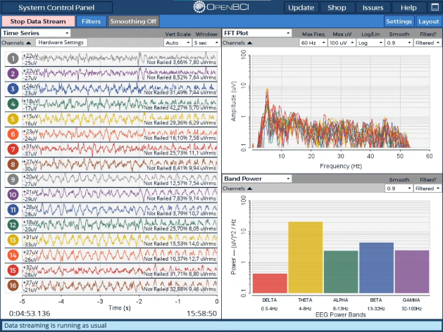 Fig. 2. Interfaz Gráfica de Usuario del programa OpenBCI.